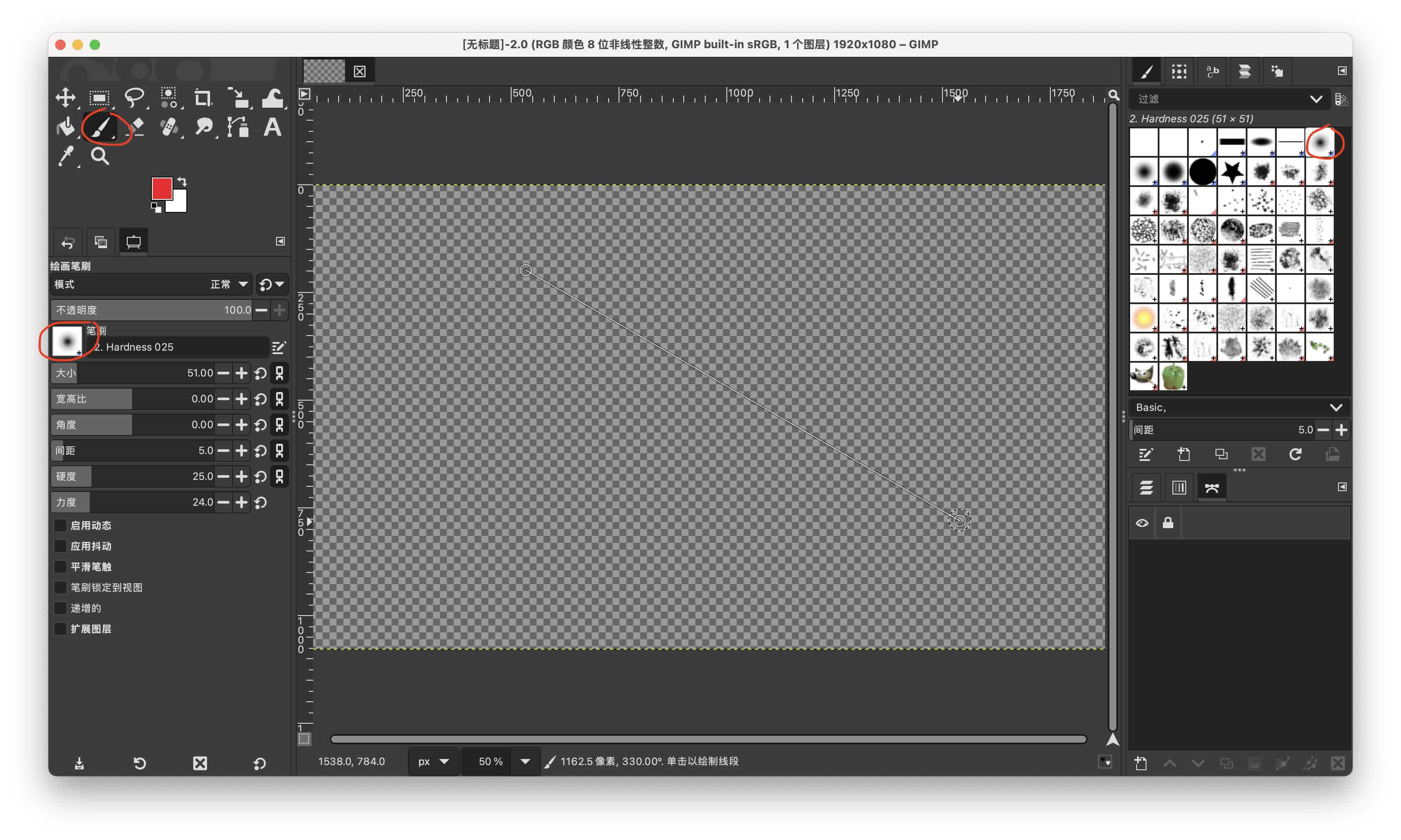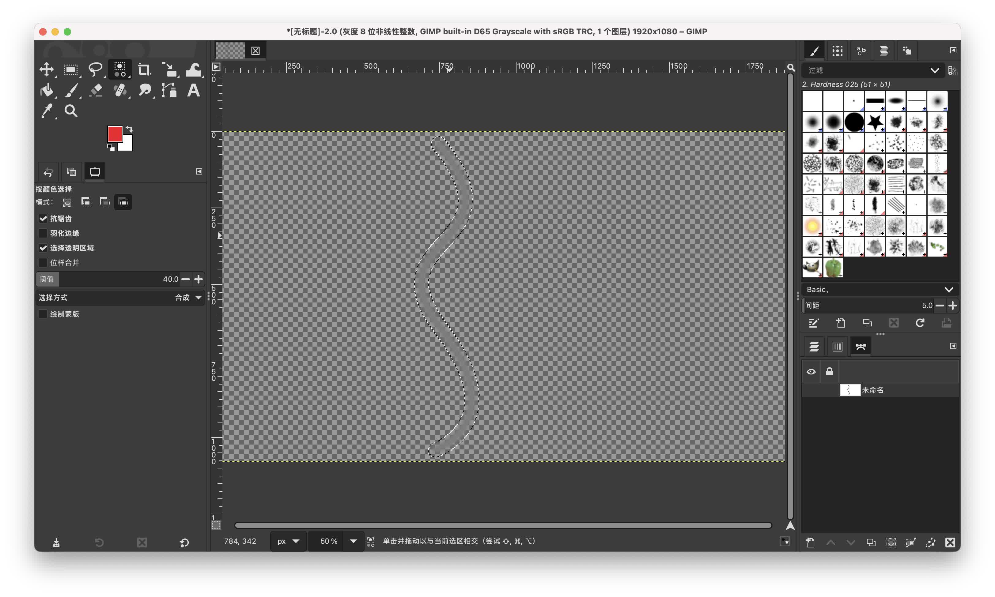 画笔选择这个形状,因为最终要改成灰度模式,画笔颜色随便