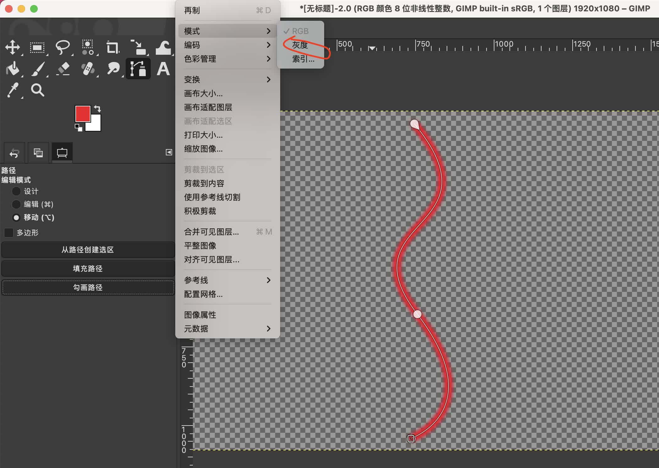 3、图像模式设置为灰度#