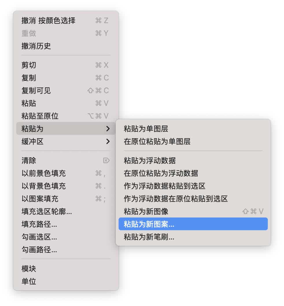 复制灰度图像,粘贴时选择编辑 > 粘贴为 > 粘贴为新笔刷