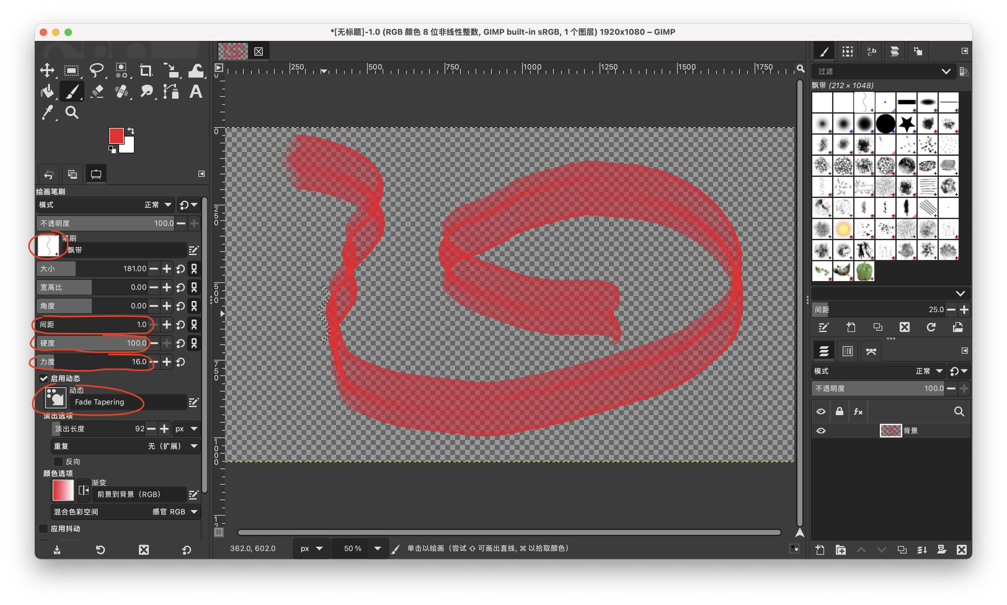 注意:要绘制飘带不是直接用画笔绘制,而是要先